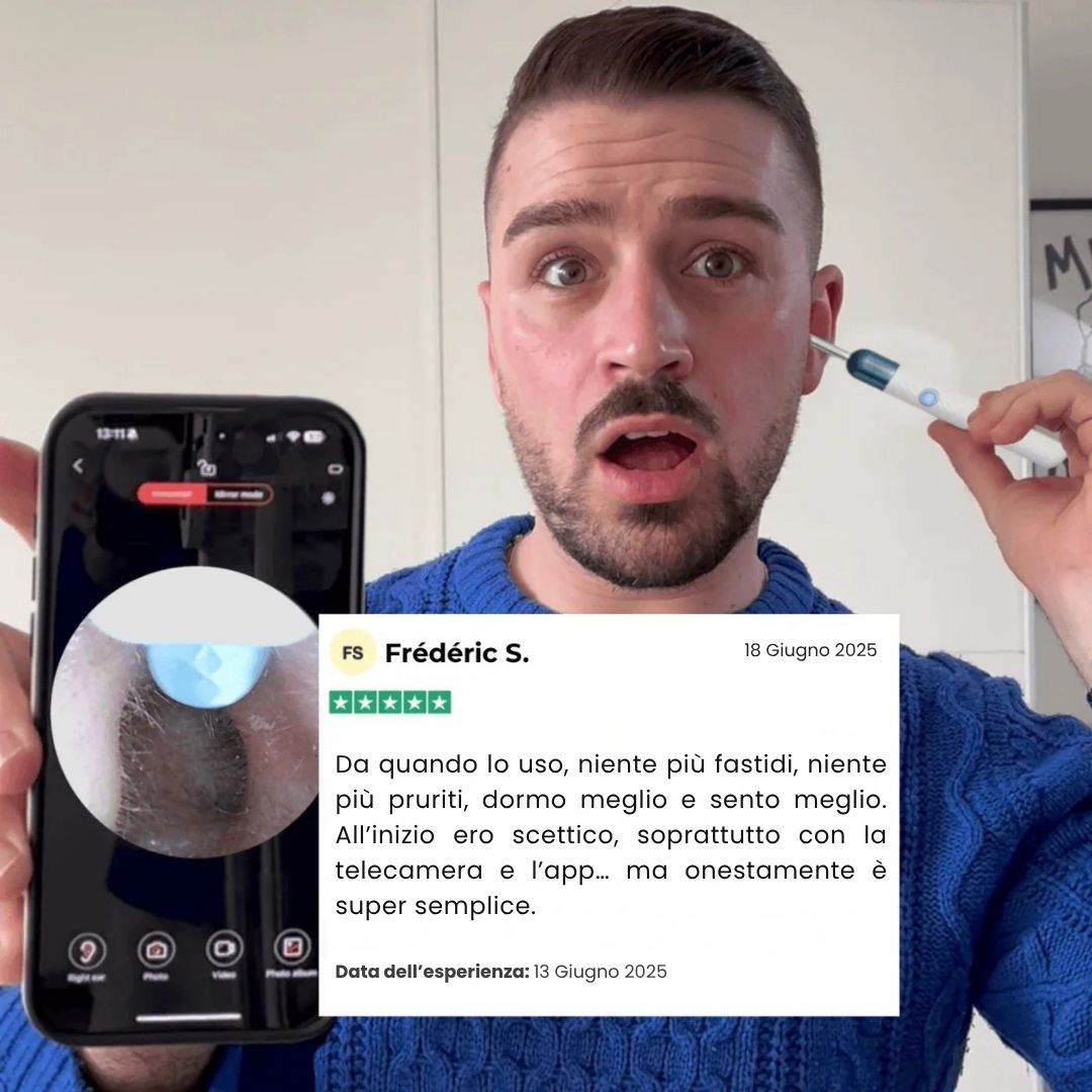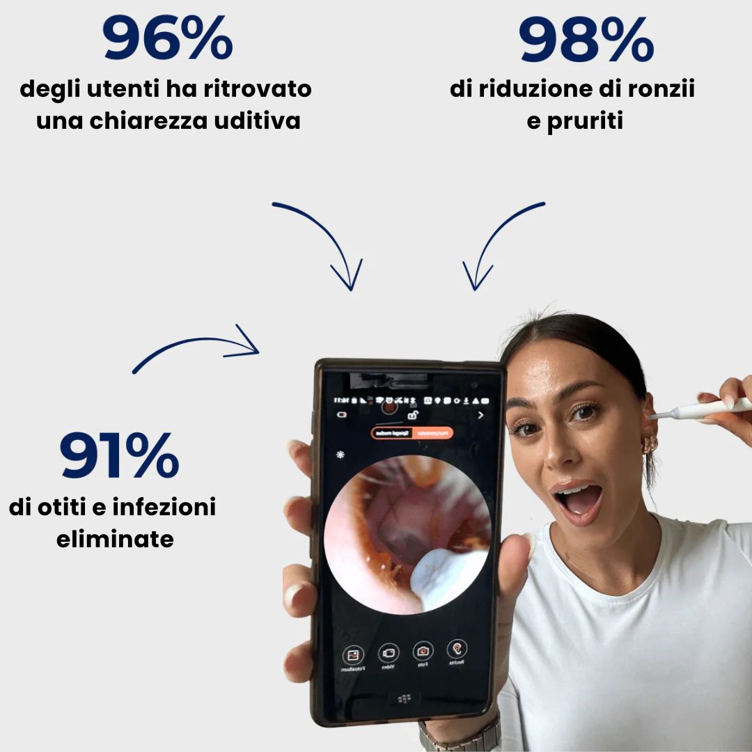 La sua tecnologia permette una pulizia accurata, senza rischio per il timpano, garantendo così un utilizzo sicuro e affidabile.